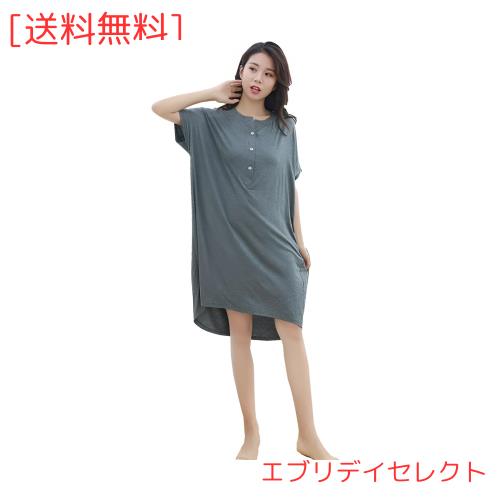 [TRTRO] ネグリジェ レディース 部屋着 ワンピース パジャマ ナイトガウン ルームワンピース ホームウエア 綿 ゆったり 膝丈 (ディープグ