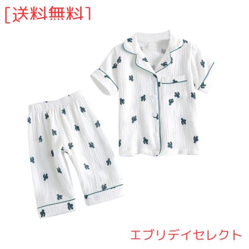 [KISBINI] 子供服 パジャマ 女の子 半袖 上下セット 2点 キッズ 部屋着 普段着 ガーゼ 綿 ガールズ 可愛い 夏 ルームウェア 前開き 寝巻