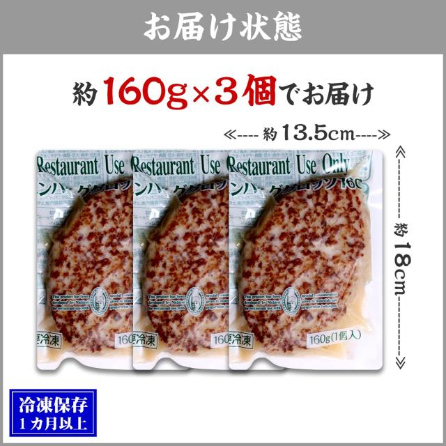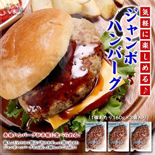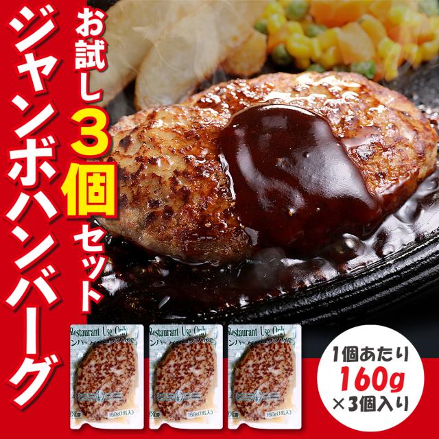 【お試し3個セット】ジャンボ ハンバーグ 160g×3個入り はんばーぐ 煮込み 時短 レンチン お手軽 簡単 バーガー agesugi_sgu