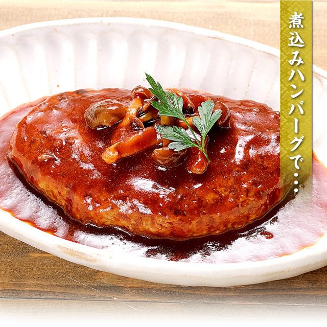 <原材料>食肉(牛肉(輸入)、豚肉)、粒状植物性たん白、たまねぎ、つなぎ(パン粉、鶏卵、でん粉)、フォンドボー、食塩、植物油脂、香辛料、糖加工品、砂糖、卵殻粉、粉末状植物性たん白、発酵調味料、加工油脂、ゼラチン、ビーフエキス、しょうゆ加工品、乳清たん白濃縮物、ポークブイヨン、ワイン/加工でん粉、調味料(アミノ酸)、ゲル化剤(増粘多糖類)、乳酸Ca、(一部に小麦・卵・乳成分・牛肉・大豆・豚肉・ゼラチンを含む)