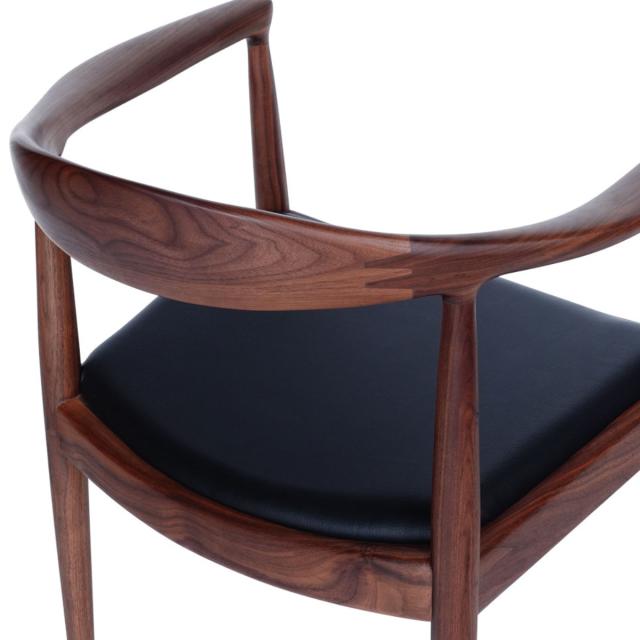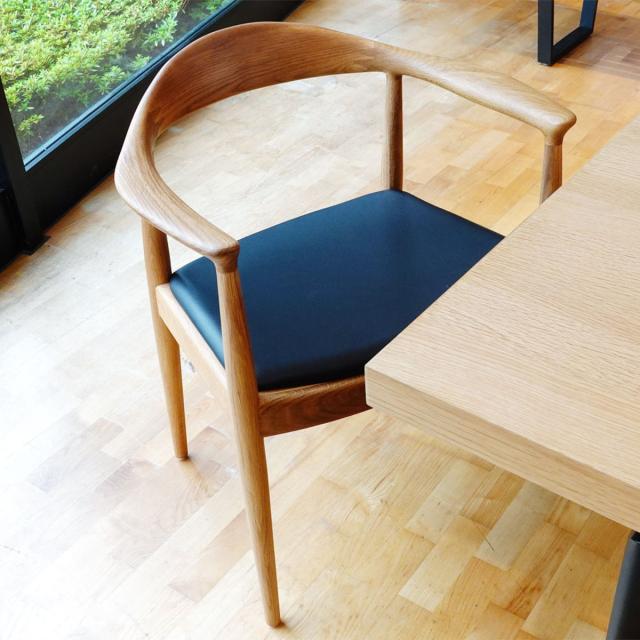 1950年にデザインされたThe Chair(ザ・チェア)は、プロポーションの美しさや掛け心地の良さなど、あらゆる点において最も完成度の高いチェアです。ザ・チェアという名称は、コペンハーゲンの有名なインテリアショップ「デン・パーマネンテ」の役員をしていたオスカー・フィッシャーが1950年に付けたもので、今ではこのチェアを表す一般的な呼称として定着しています。威厳のあるフォルムと素晴らしい掛け心地を持ち「ザ・チェア」と呼ぶにふさわしいチェアということでしょう。