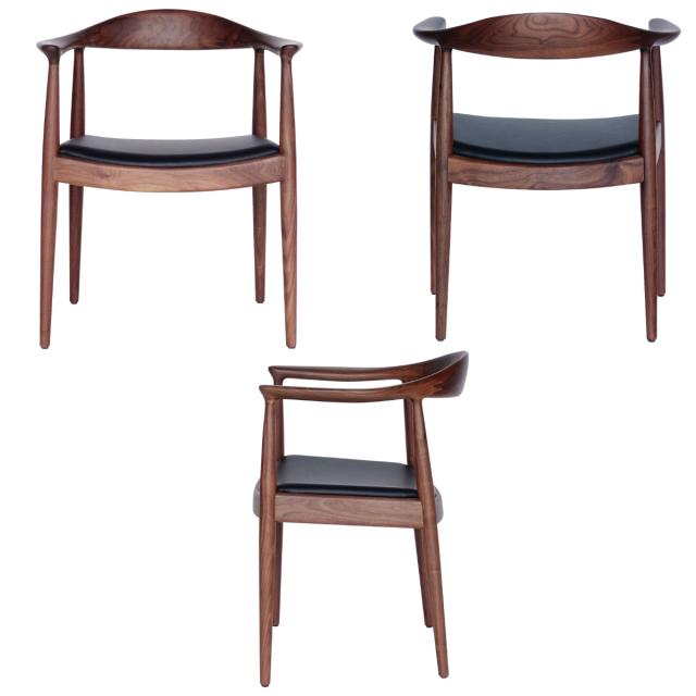 ダイニングチェア 肘付 座面高47cm 本革 ウォールナット ザ・チェア ( リプロダクト デザイナーズチェア チェア 椅子 食卓 リビング 背もたれ 天然木 ナチュラル 北欧 無垢材 曲木 肘付き レザー )