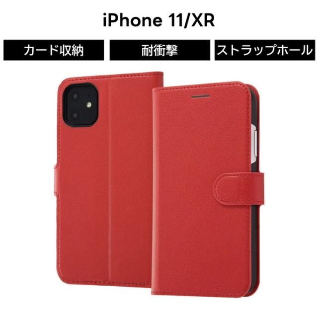 iPhone 11 ケース 手帳型 マグネット iPhone11 iPhoneXR XR アイフォン 手帳型ケース 耐衝撃 レッド シンプル ソフト ハード スマホケース カード収納