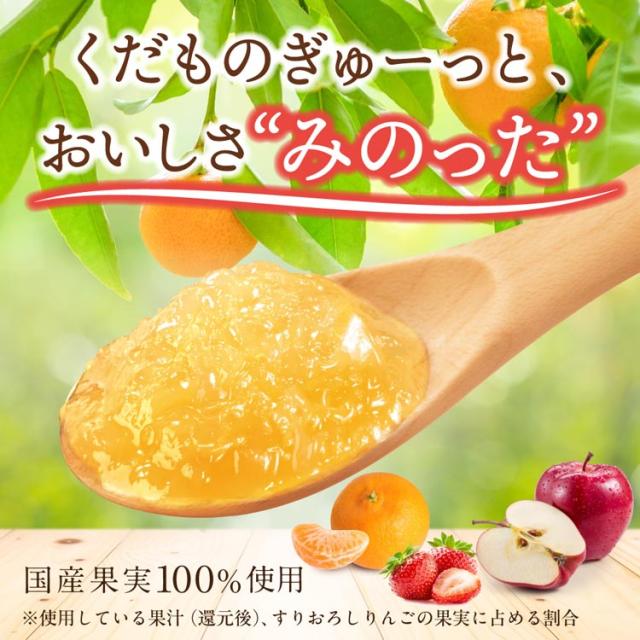 | すりおろしりんご(国内製造)、りんご濃縮果汁、みかん濃縮果汁(温州みかん100%)、寒天/pH調整剤、ゲル化剤(増粘多糖類)、乳化剤 |