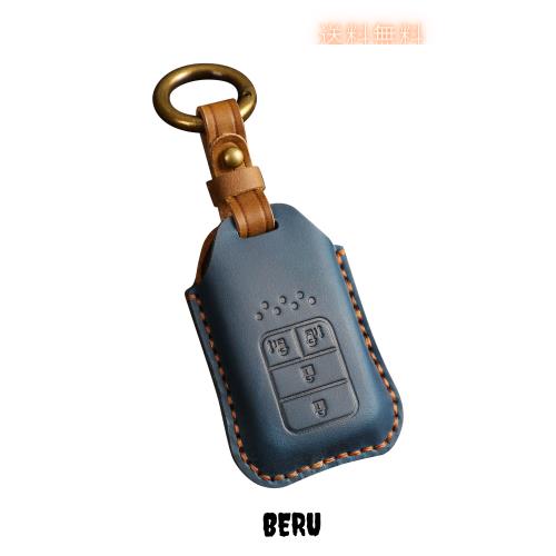 [YANMW] フリード キーケース オデッセイ RC1 RC2 スマートキーケース適合ホンダ ステップワゴン本革キーカバー 4ボタン専用 (青、両側電