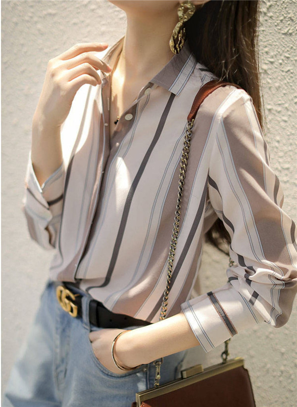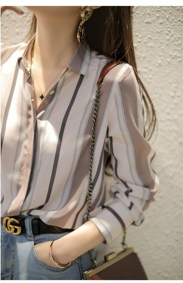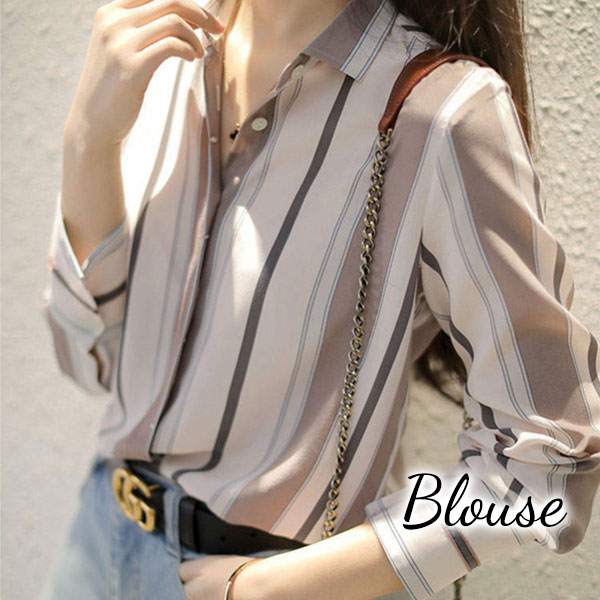 シャツ レディース 長袖 ブラウス ストライプ トップス 無地 可愛い 秋服 ゆったり シンプル 30代 40代 ママ 体型カバー 入園式 卒業式