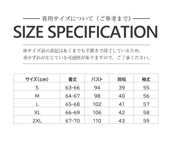 ※基本的に、XL・LL・2Lのサイズはすべて同じサイズです。