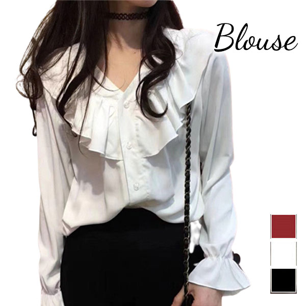 ブラウス レディース 長袖 シャツ vネック トップス 無地 秋服 シンプル ママ ゆったり 韓国風 体型カバー 30代 40代 おしゃれ 通勤