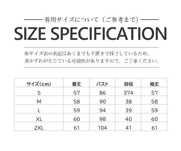 ※基本的に、XL・LL・2Lのサイズはすべて同じサイズです。