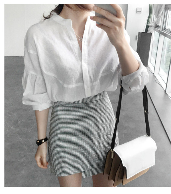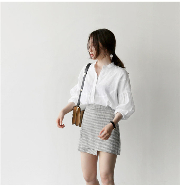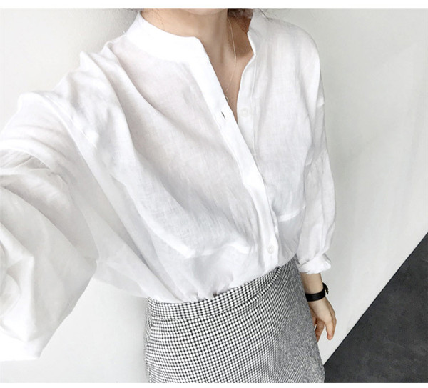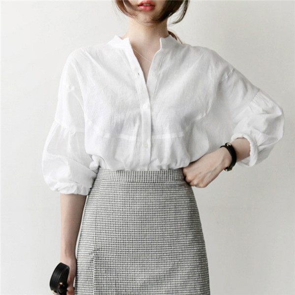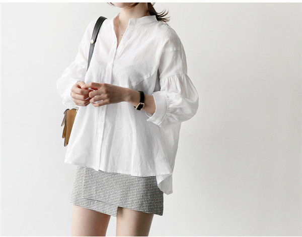 ブラウス レディース 長袖 シャツ ヘンリーネック トップス 無地 秋服 シンプル ママ ゆったり 韓国風 体型カバー 30代 40代 おしゃれ 通勤