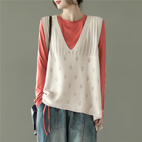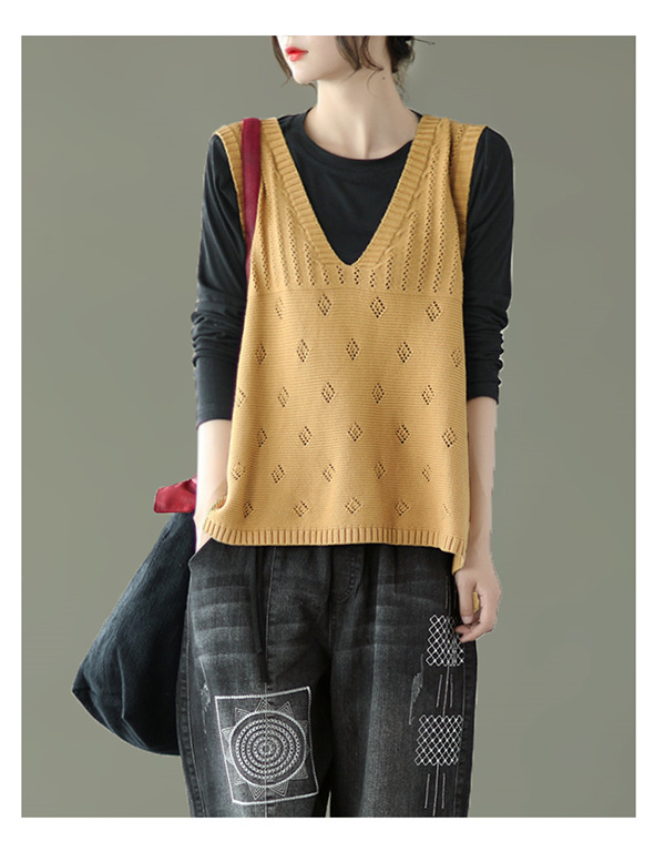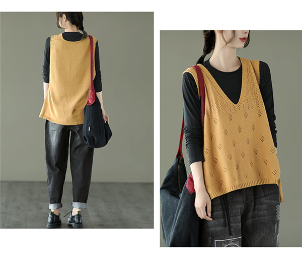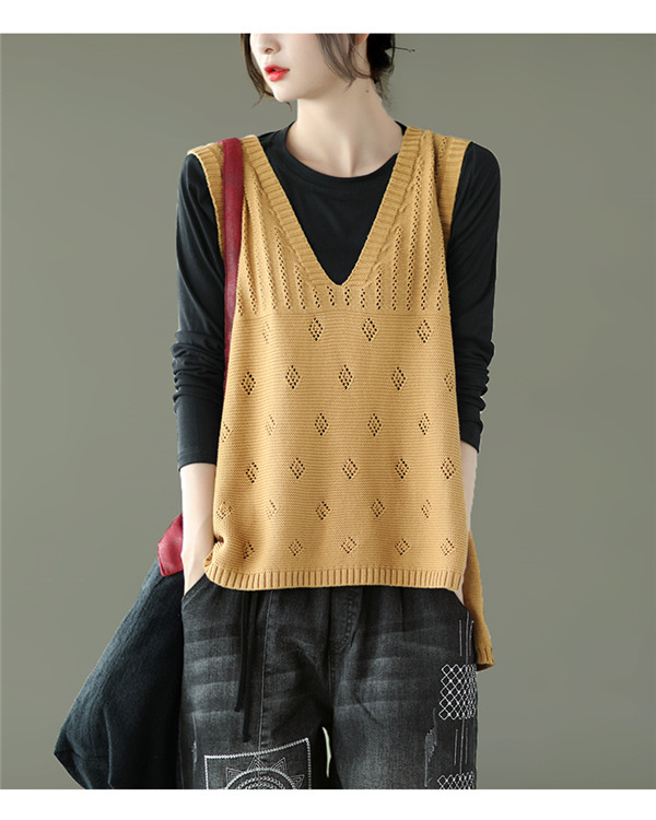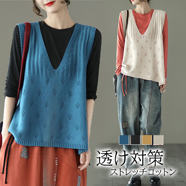 ニット ベスト タンクトップ vネック レディース メッシュ トップス 無地 大きいサイズ コーデ 40代 秋冬 仕事 カジュアル 体型カバー