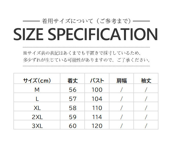 ※基本的に、XL・LL・2Lのサイズはすべて同じサイズです。