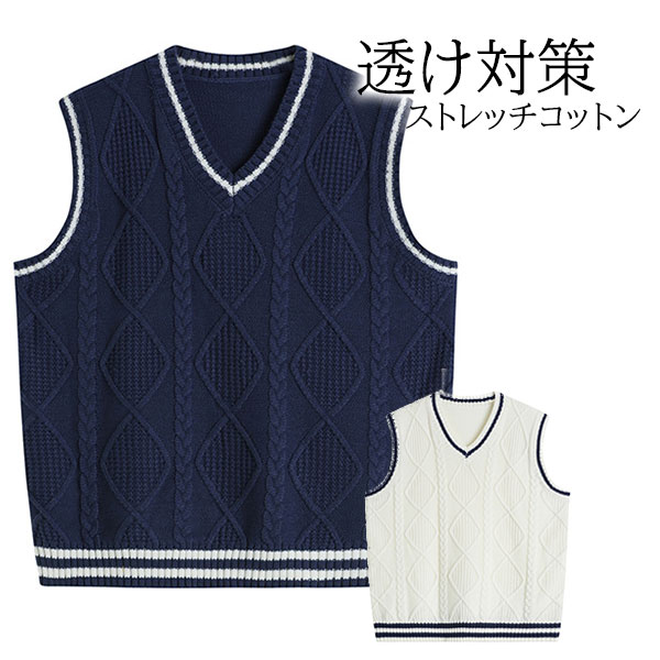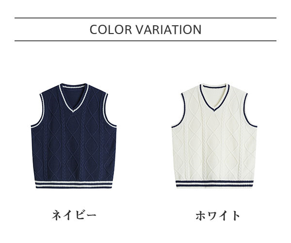ベスト レディース ニット ケーブル編み vネック タンクトップ ノースリーブ スウェット プルオーバー 秋服 通勤 体型カバー 40代 無地 着痩せ