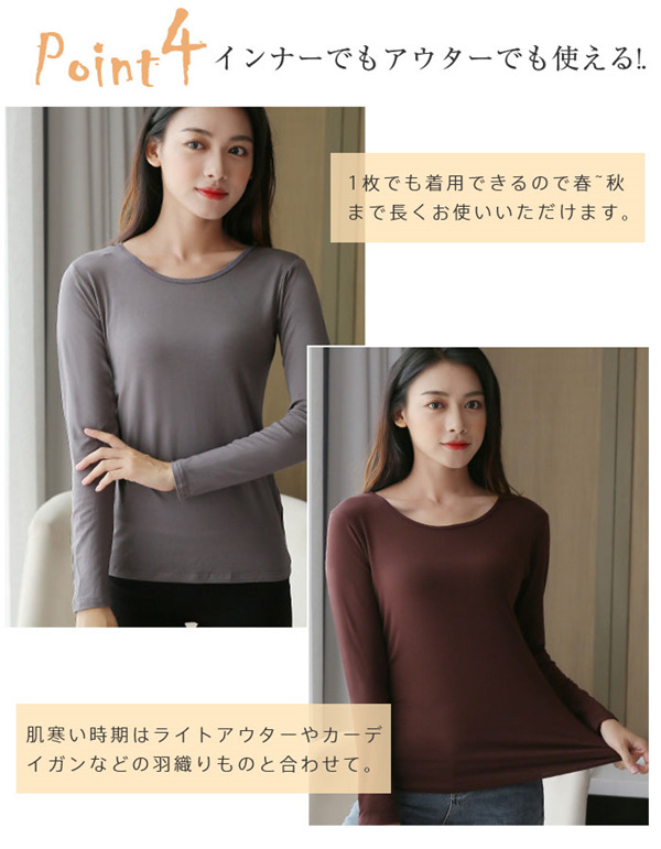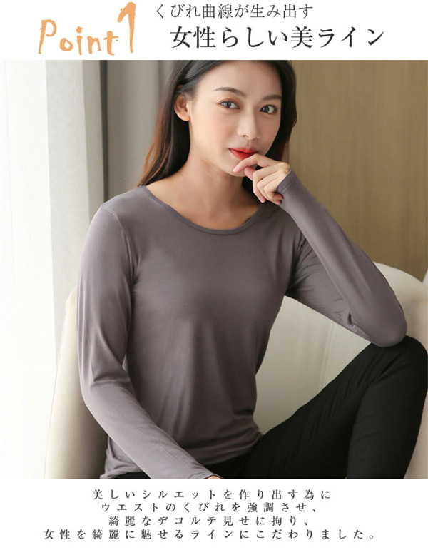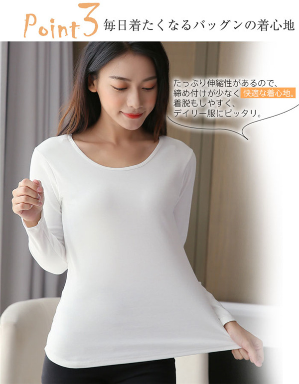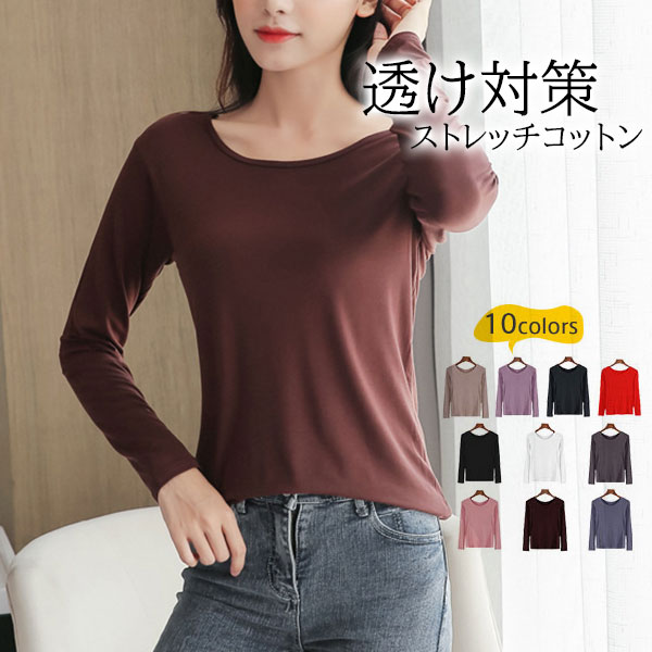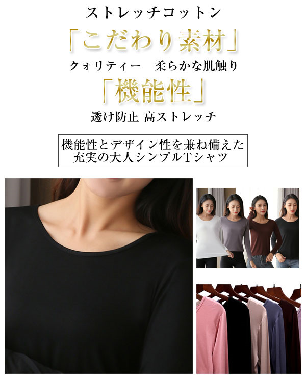 ポイント超超祭 カットソー レディース 長袖 Tシャツ ラウンドネック アンダーウェア 無地 トップス 暖かい シンプル おしゃれ 秋冬 きれいめ ストレッチ