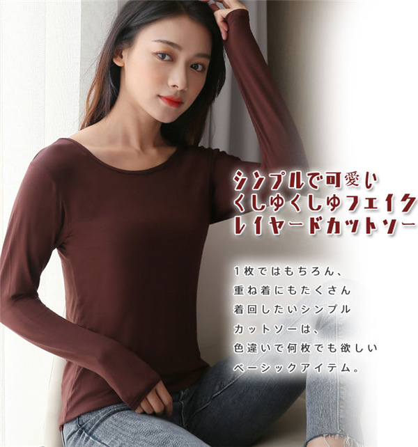 【キーワード】カットソー 長袖 Tシャツ レディース インナー トップス tシャツ シンプル 無地 おしゃれ 透けにくい 重ね着風 オシャレ チュニック きれいめ Vネック 20代 30代 40代 ボートネック タートルネック レイヤード 秋服 ロング丈 ハイネック 秋冬 春 ブラック ホワイト ネイビー ブラウン おすすめ 女性レディースtシャツ ティーシャツ 肌着 アンダーウェア カジュアル 大きいサイズ