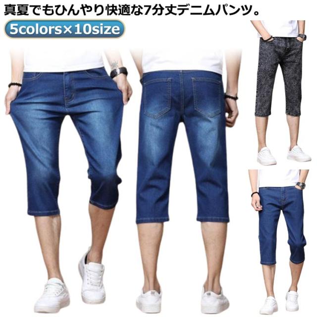 | 5colors×10size 真夏でもひんやり快適な7分丈デニムパンツ。 ストレッチが効いた伸縮自在の生地使用。 | |
