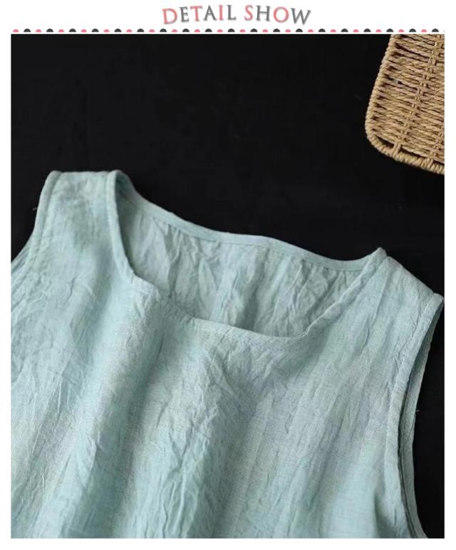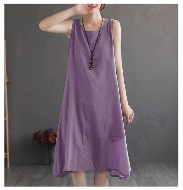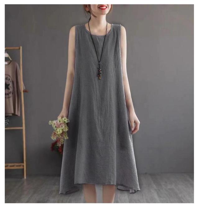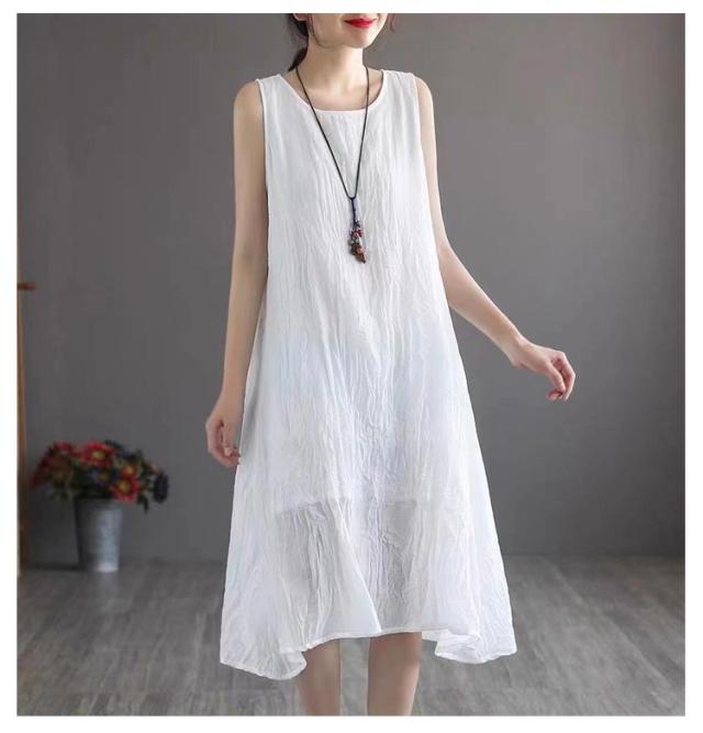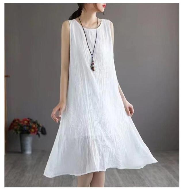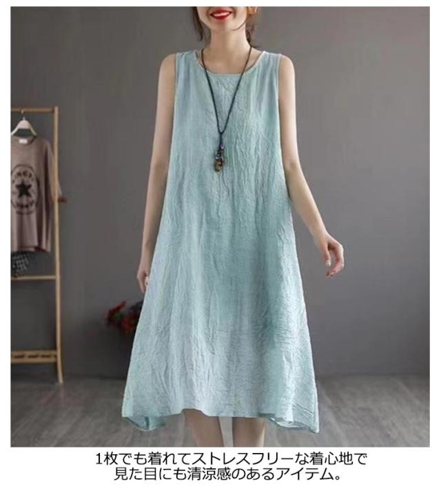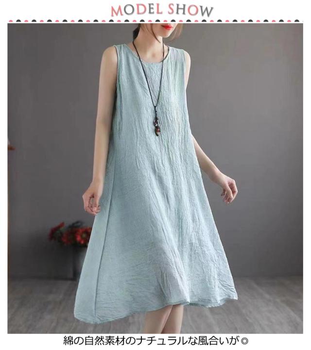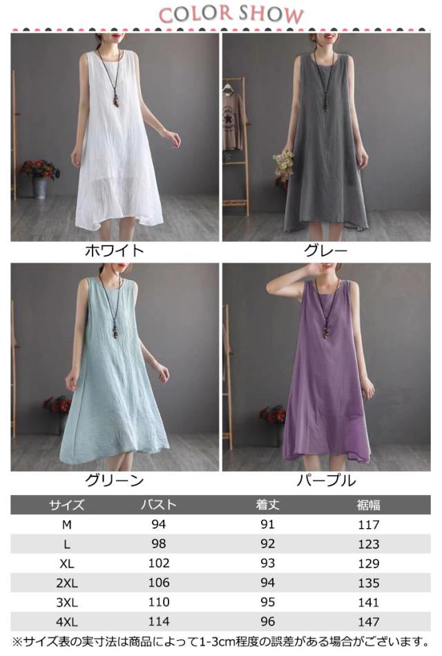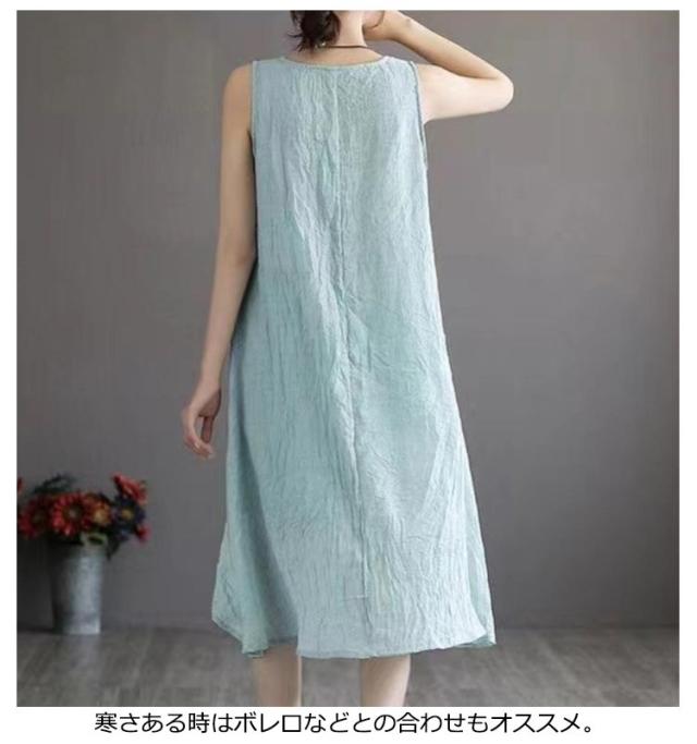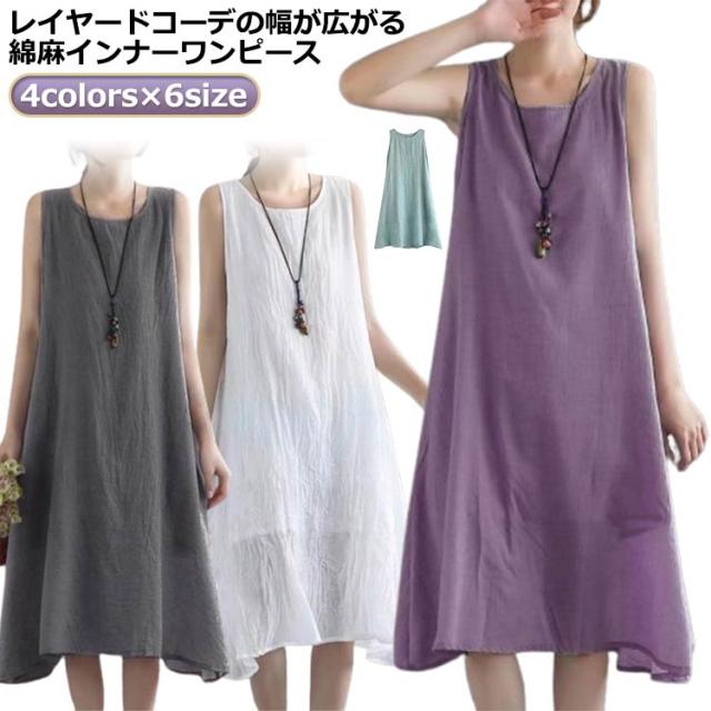 ロングワンピース ロングワンピ ペチコート ペチワンピ コットンリネン 綿麻 ワンピース 麻 リネン ノースリーブ 夏ワンピース 綿 ロング丈 ミモレ丈 体型カバー レイヤード 重ね着 シンプル 送料無料