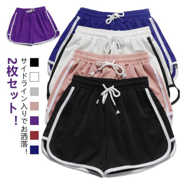 ルームパンツ 夏 レディース ショート 2枚セット ズボン 部屋着 短パン ショートパンツ ルームウエア ライン入り ヨガウエア スポーツウェア 夏用 ボトムス 短パン スポーツパンツ 運動 旅行 ジョギング