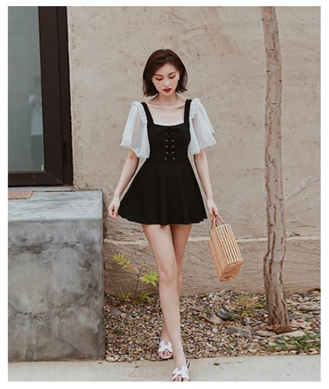 水着 レディース水着 可愛い 黒 体型カバー ぽっちゃり 水着 半袖 中学生 スクール水着 韓国 タンキニ 水陸両用 女性 ワンピース スイムウェア 夏休み 海水浴 プール 温泉 水着 体型カバー リゾート 水泳 みずぎ ビーチ 海 温泉 プール 送料無料