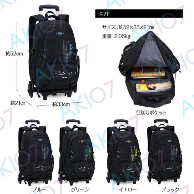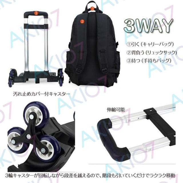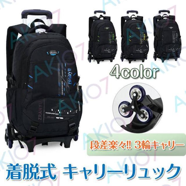 【着脱式&3輪キャリー】キャリーリュック バックパック 汚れ止めカバー付 段差にも楽々 サイドポケット付き 収納 ファスナー 釣り 便利 買い物 キャンプ