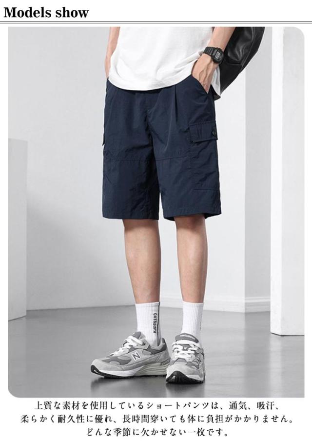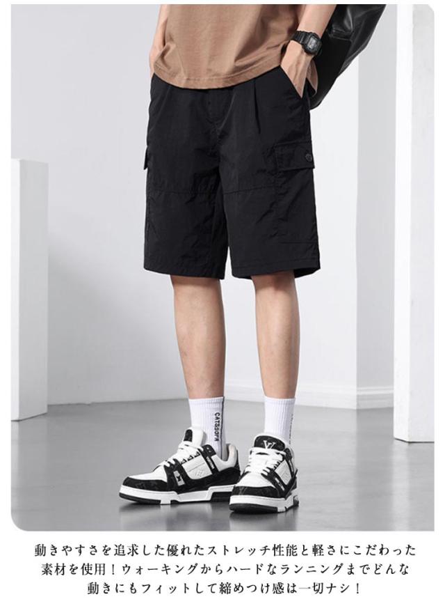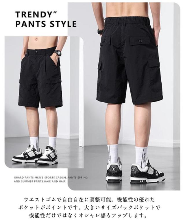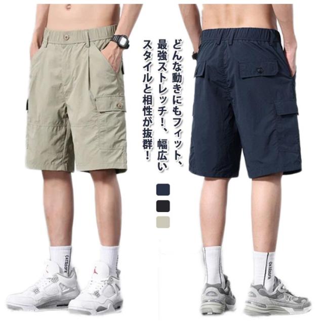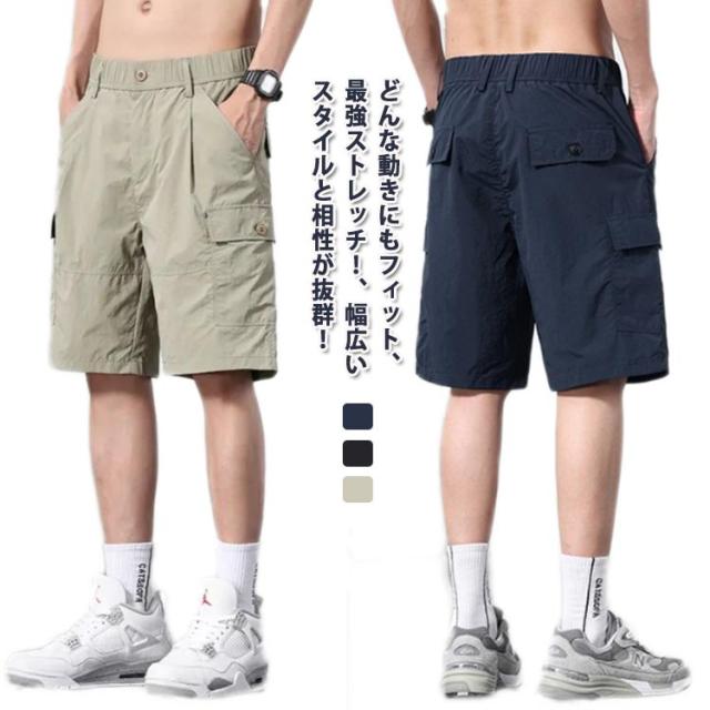 短パン ハーフパンツ 作業着 涼しい メンズ カーゴパンツ カーゴショートパンツ ひんやり 接触冷感 ショートパンツ カーゴパンツ ポケット ウエストゴム カーゴショーツ 吸水速乾 ミリタリー 五分丈 無地 ゆったり ワイド ストリート カジュアル 春 春服 夏 夏服