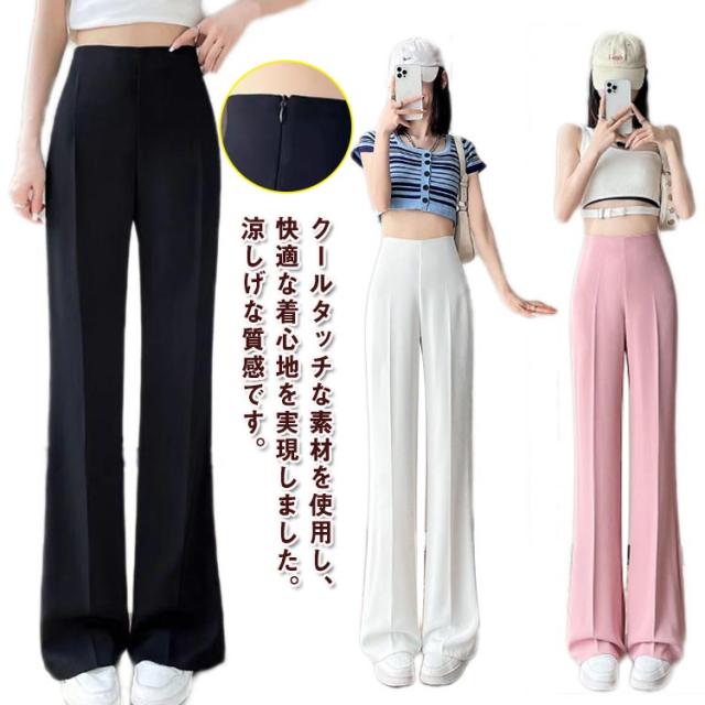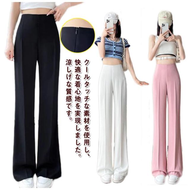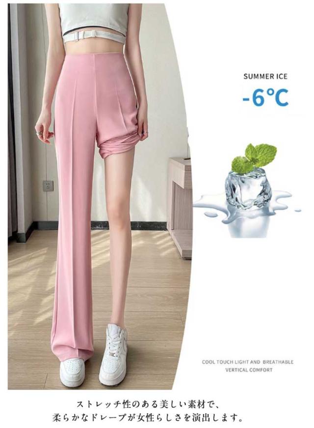 ワイドパンツ 吸汗速乾 ワイドスラックス ボトムス ワイドパンツ レディース 動きやすい 接触冷感 ワイドスラックス カジュアル 長ズボン 速乾 ストレッチ アイスシルク 細見え ロングパンツ ゆったり 脚長効果 おしゃれ キレイめ ハイウエスト 体型カバー 接触冷感
