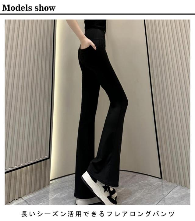 | 長いシーズン活用できるフレアロングパンツ 高いストレッチが効いた生地がシワにもなりにくく、履き心地よい。アクティブな動きも窮屈感なく快適。 選べる丈感がうれしい。 ハイウエストのデザイン、足にぴったりフィットするシルエットで美脚効果抜群。 シンプル無地なので手持ちのトップスとも相性抜群! | |
