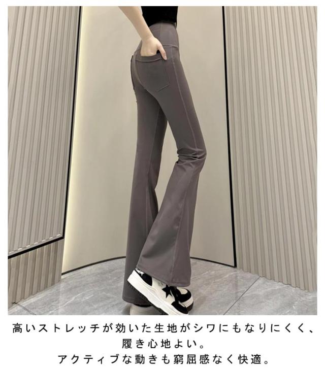 フレアパンツ 着?せ ハイウエスト フレアパンツ 脚長 パンツ おしゃれ 美脚 ストレッチ きれいめ タイト ボトムス ロング丈 オフィス ヨガウエア 運動 ダンスパンツ スポーツパンツ ヨガパンツ ダンス衣装 大きいサイズ 無地 シンプル 大人 女性 春秋 ギフト