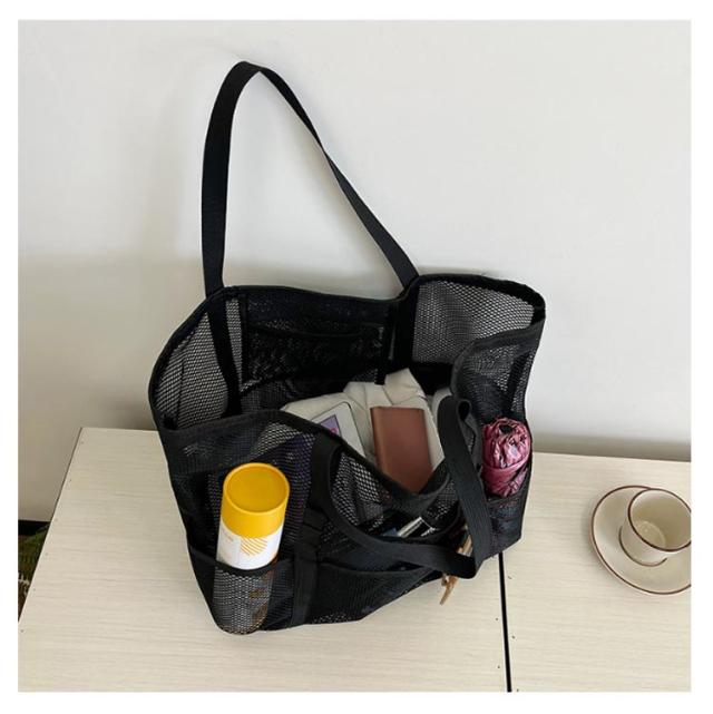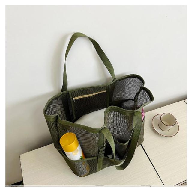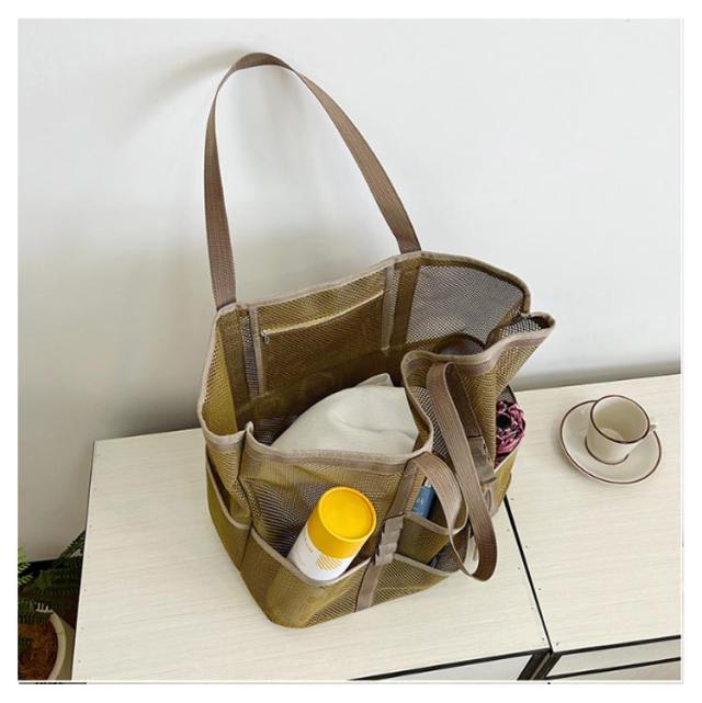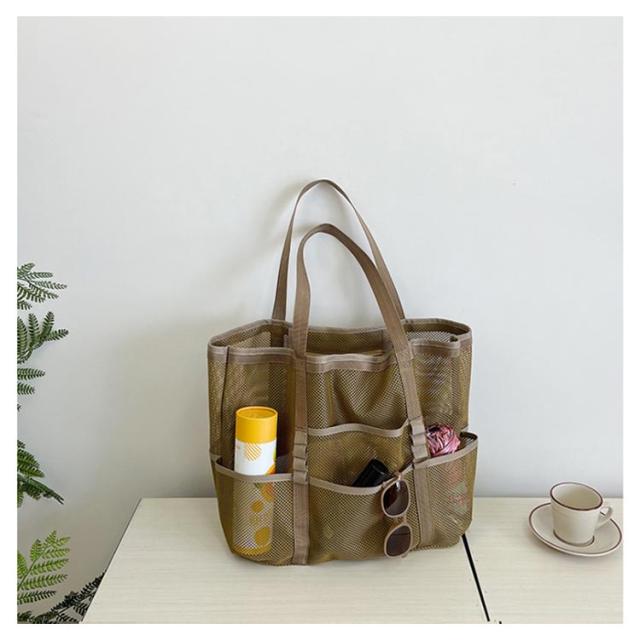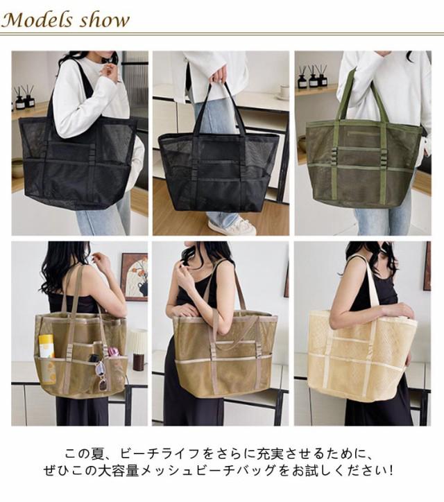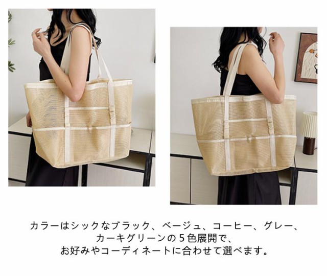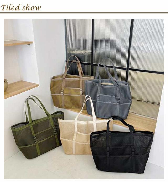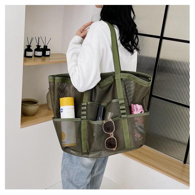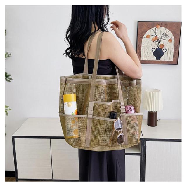 | 大容量のメッシュビーチバッグ ポッケト多い 夏の陽気にぴったりのアイテム、大人女性に大好評の大容量メッシュビーチバッグが登場しました! ビーチでのリラックスタイムをさらに快適にするために設計されたこのバッグは、ビーチタオル数枚、ビーチマット、サンダル、マグボトル、日焼け止め、さらには衣類まで、ビーチで必要なものがすべて収納可能です。 大容量なのに、驚きの約220gの超軽量設計で、折りたたんでコンパクトに収納できるので、持ち運びもラクラク! 夏の強い日差しも気にせず、涼しいメッシュ素材で作られており、通気性抜群です。 カラーはシックなブラック、ベージュ、コーヒー、グレー、カーキグリーンの5色展開で、お好みやコーディネートに合わせて選べます。 この夏、ビーチライフをさらに充実させるために、ぜひこの大容量メッシュビーチバッグをお試しください! | |
