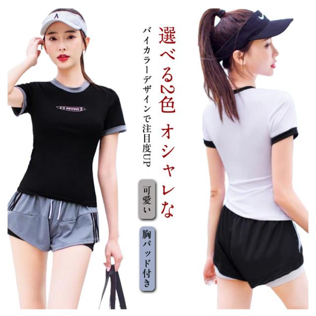高校生 水着 スクール水着 おしゃれ 大学生 夏 中学生 水着 女の子 体型カバー セパレート 可愛い ママ水着 胸パッド付き ビーチ フィットネス 女性 M~XL レディース 30代 小胸 日焼け防止