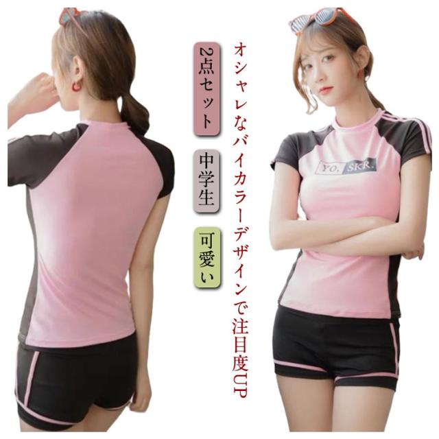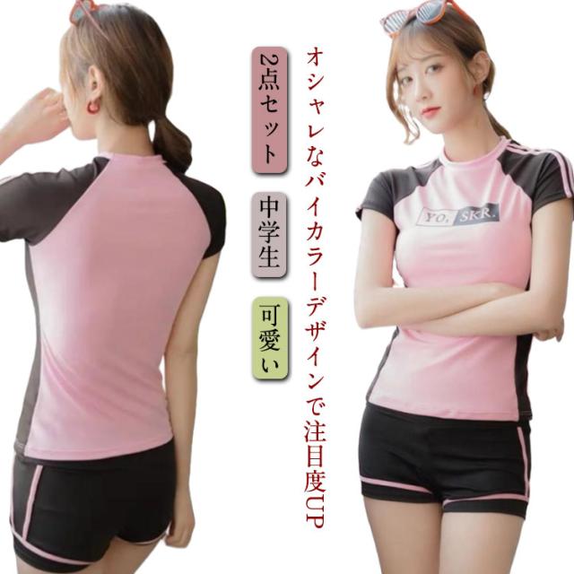 おしゃれ レディース 2点セット 高校生 大学生 水着 中学生 水着 夏 ママ水着 ビーチ 体型カバー セパレート 胸パッド付き スクール水着 フィットネス 女性 M-XL 女の子 30代 小胸 日焼け防止