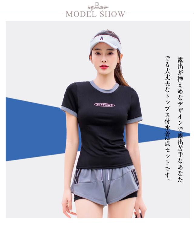 女性 水着 2点セット 体型カバー 大学生 レディース 中学生 ママ水着 夏 高校生 可愛い スクール水着 水着 胸パッド付き ビーチ フィットネス セパレート M~XL 女の子 30代 小胸 日焼け防止