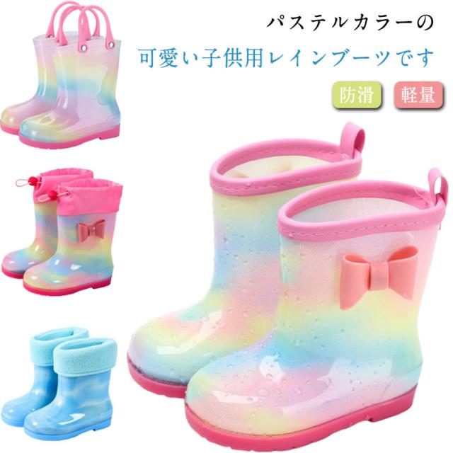小学校 子供 女の子 通園 通学 レインブーツ 長靴 長靴 人気 入学 こども キッズ 女 かわいい 保育園 入園 中敷き 雨靴 子ども 15-21cm レインボー 女子 キラキラ ピンク 可愛い レインシューズ ながぐつ ジュニア フード
