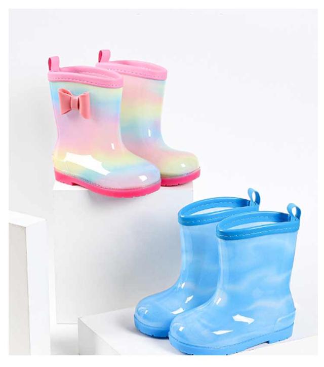| パステルカラーの可愛い子供用レインブーツです 雨の日のお出かけが楽しくなりそう 子供が使いやすいデザインと設計 落ち着いたマットな質感でカラフルなシンプルでかわいいレインブーツ。 やわらかく、しなやかなゴムを使用しているのでとても履きやすく、歩きやすい。 バックにはループ付きでお子様が自分で履きやすい仕様。 安定感のあるソールで、すべりやすい雨の日もしっかりサポート。 | |