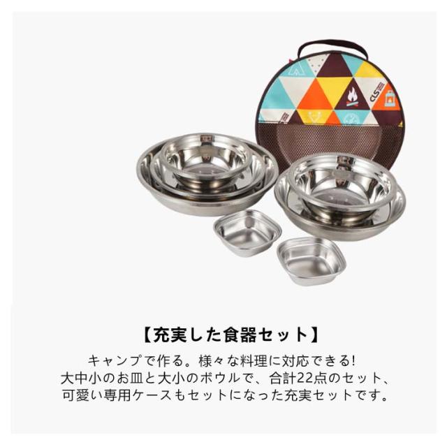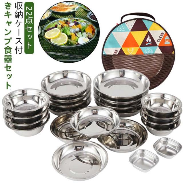 【22点セット プレート アウトドア 食器セット テーブルウェア 皿セット ボウル キャンプ ステンレス 】 皿 食器 バーベキュー 食器皿 コンパクト おしゃれ 収納ケース付き 収納 バッグ テーブルウェアセット 【22点セット BQQ 山 川