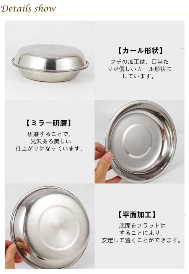 | サイズについての説明 | 商品詳細 【セット】: ・深皿(大)・(小)・(中)各4 ・ボウル(大)・(小)各4 ・小皿2 ・専用ケース1 【サイズ】: ・深皿(大)=21.2×3.6cm 重量90g ・深皿(中)=19.2×3.3cm 重量69g ・深皿(小)=17.4×3cm 重量61g ・ボウル(大)=15.8×5cm 重量64g ・ボウル(小)=13.5×4.5cm 重量45g ・小皿(SUS304製)=8.3×2.5cm 重量37g ・専用ケース=23×23×8cm 【総重】: 約1530g(収納ケース含む) ※商品のサイズは手作業で測定させて頂いておりますので、若干の誤差があります。 |