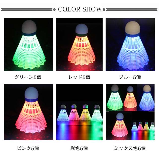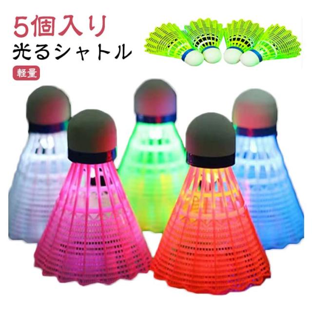 ダイエット 光る 5個入り シャトル 夜間訓練 ナイロン 屋外 ストレス解消 ボール トレーニング プラスチック 軽量 LEDバドミントン 運動 夜間に見やすい 野外活動 ビーチゲーム 屋内 キャンプ スポーツ アウトドア 光るシャトル