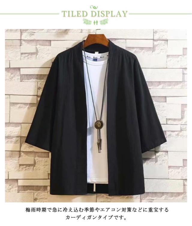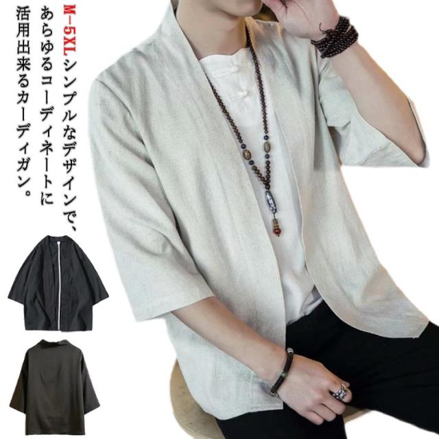ジャケット リネン風 シャツ カーディガン サマーカーディガン 無地 和式 カジュアル 甚平風 七分袖 綿麻風 夏服 羽織り 和風 薄手 お洒落 シャツ 軽量 通気性 メンズ 涼しい 大きいサイズ 体型カバー ゆったり 開襟シャツ
