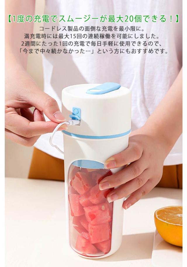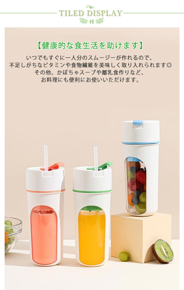 ミキサー USB充電 ポータブルミキサー コンパクト 350ml コードレス ジュース 小型 プロテイン ブレンダー ジューサー スムージー 洗える 持ち運び アウトドア オフィス ジム 充電式 軽量 携帯便利 野菜 果物 一台多役