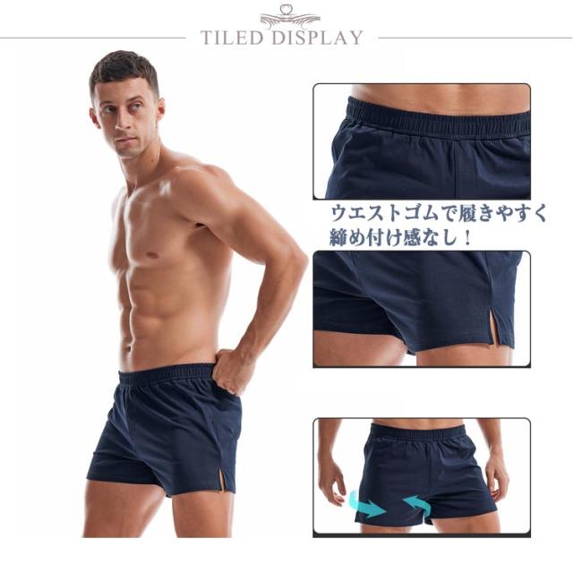 筋トレ ショートパンツ ジムウェア ストレッチ トレーニングウェア ハーフパンツ 綿 フィットネスパンツ ショートパンツ スポーツウェア コットン 裾スリット 短パン 3分丈 男性 ランニングパンツ