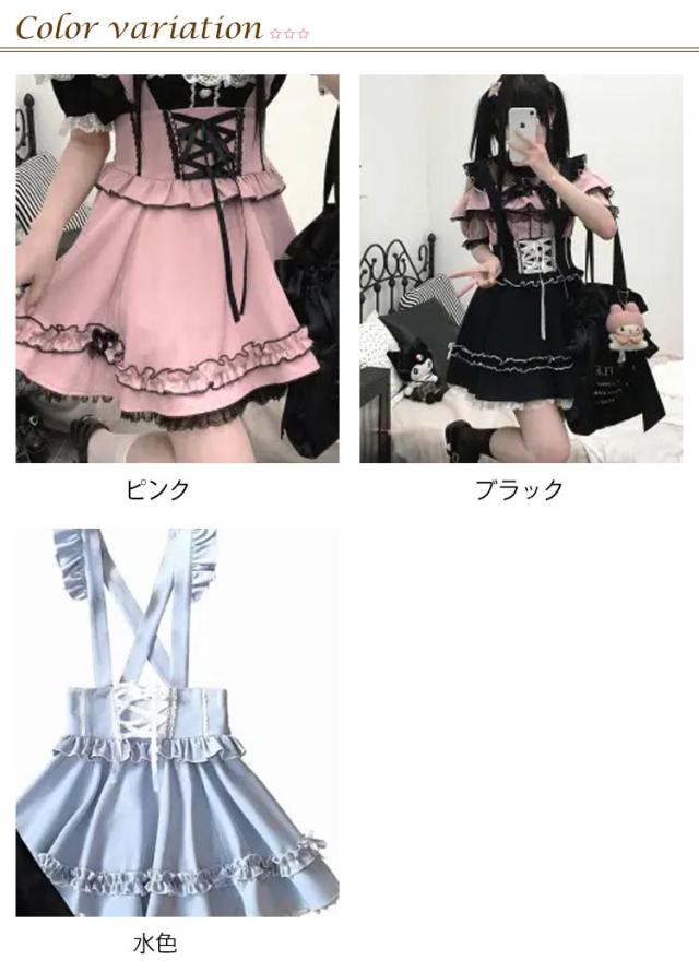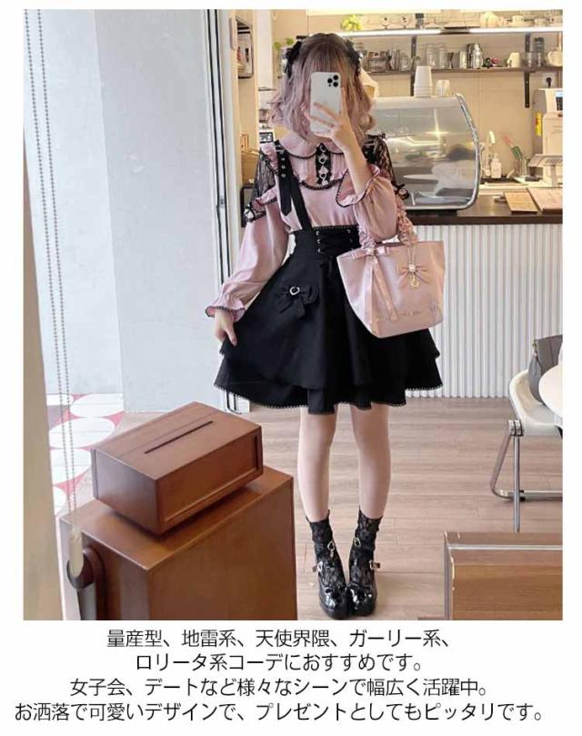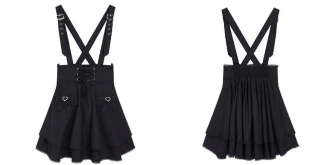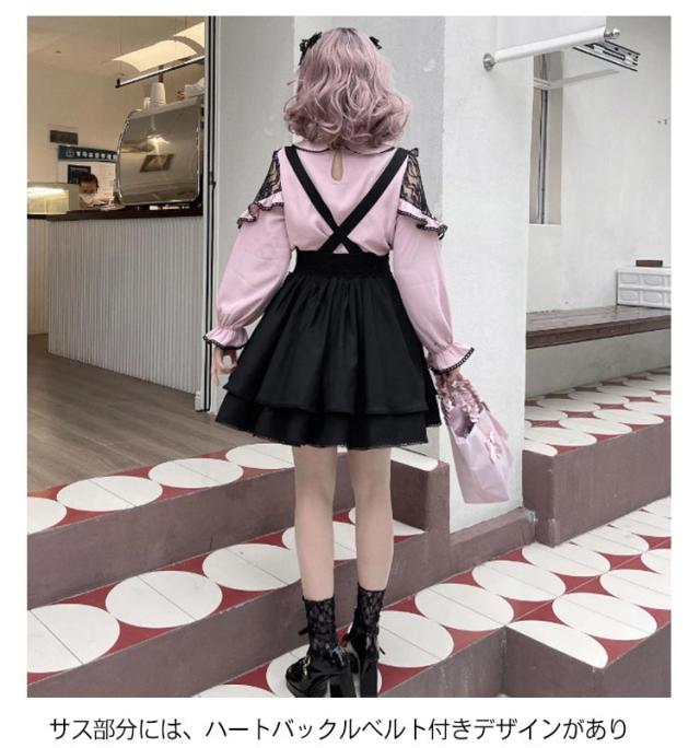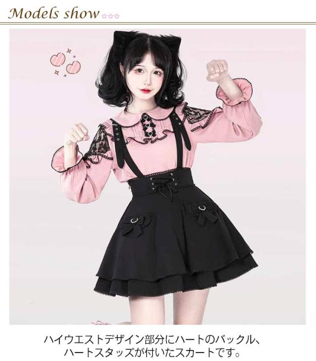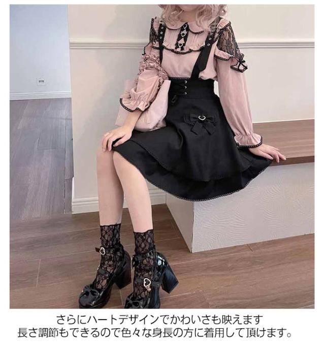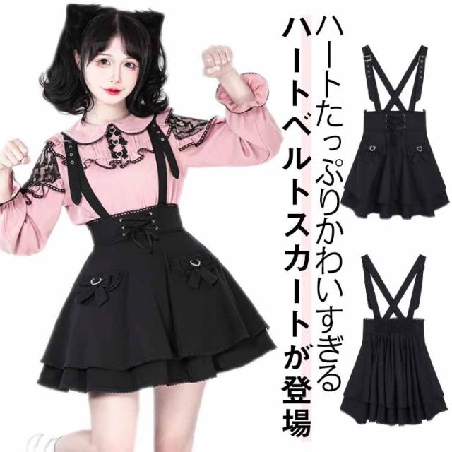 ゴスロリ ひざ上 かわいい レディース フレア 吊りスカート 量産型 地雷系 ロリータ ショート丈 サスペンダースカート ボトム ハート スカート Aライン 参戦服 きれいめ バックル サブカル 甘ロリ ハート 春 夏
