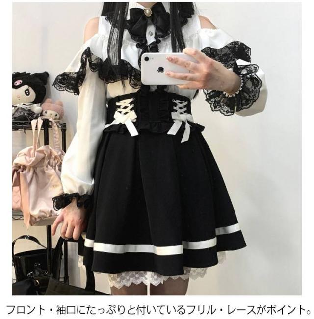 ロリータ 参戦服 地雷系 取り外し可能 量産型 シャツ かわいい オープンショルダー レース フリル サブカル リボン 2層 かわいい レディースブラウス おしゃれ パール ブラウス ゴスロリ 長袖 肩出し フレンチガーリー 学生 春 夏