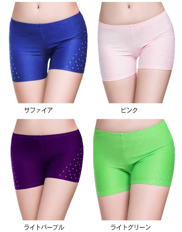 透け防止 3分丈 ダンス インナーパンツ ラインストーン付 ショートパンツ ベリーダンス ストレッチ素材 インナー社交ダンス 下着 ペチコート 見せパン レッスン着 ヨガ フィットネス ベリーダンス レッスンウェア ヒップホップ ウェア