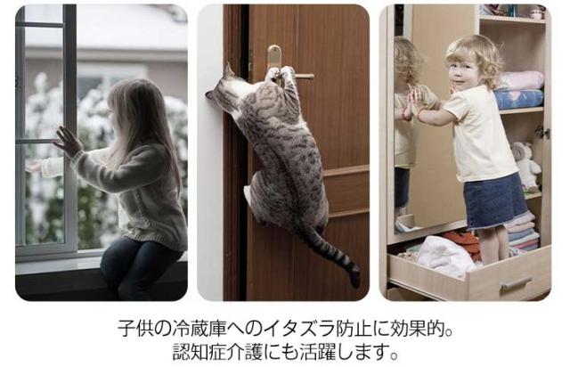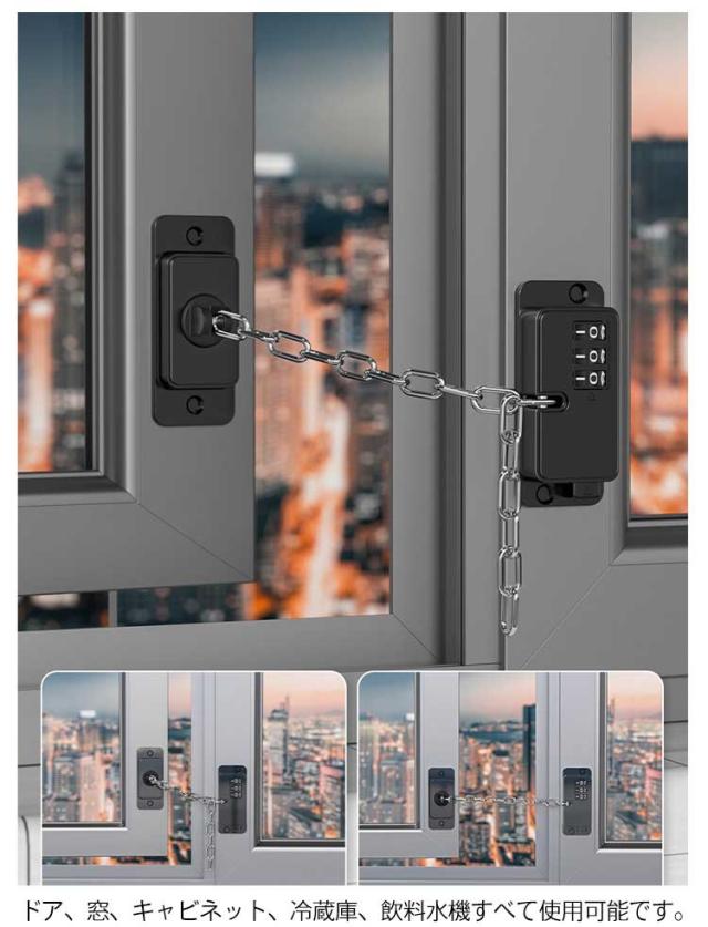 | ヘムライン接着、ドアと窓を壊しません 暗証番号ロック解除、便利で簡単です。長さ調節可能、360°調節可能。 子供の冷蔵庫へのイタズラ防止に効果的。認知症介護にも活躍します。 ドア、窓、キャビネット、冷蔵庫、飲料水機すべて使用可能です。 | |