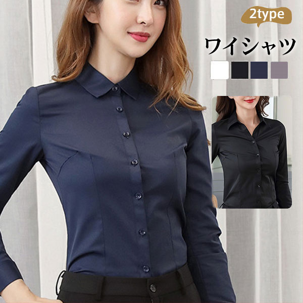 2タイプ ブラウス ワイシャツ レディース 長袖 フォーマル ビジネス 黒 OL 事務服 形態安定 無地 おしゃれ 就活 仕事 制服 おしゃれ