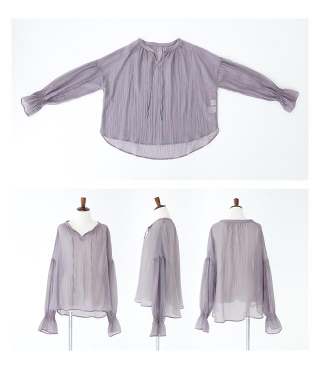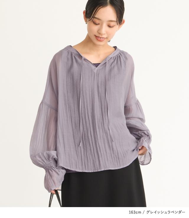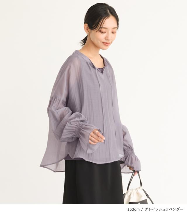 ブラウス シアー レディース トップス 長袖 シアーシャツ チュニック バンドカラー キャンディースリーブ シースルー ドロップショルダー しわ加工 リボン きれいめ 大きいサイズ 秋 夏 春 オシャレウォーカー 【TP】 シャツ・ブラウス シャツ プルオーバー n'OrLABEL ノア—ルレーベル 大人女子 大人可愛い お洒落可愛い 大人カジュアル ベーシック ニュアンス ラフ オフィスカジュアル キャンディスリーブ ミディ丈 ミドル丈 チュニック丈 ギャザー 無地 透け感 レイヤード 重ね着 おうちで洗える お尻が隠れる カジュアル シンプル ナチュラル キレカジ フェミニン 上品 Sサイズ Mサイズ Lサイズ LLサイズ 3Lサイズ XLサイズ フリーサイズ ぽっちゃり 体型カバー プラスサイズ 10代 20代 30代 40代 50代 60代 女子会 オフィス 通勤 通学 お買い物 お出掛け 旅行 リゾート レジャー おしゃれ お洒落 トレンド 流行 osharewalker パープル 紫 グレイッシュラベンダー ブラウン 茶色 ブラック 黒 くすみカラー スモーキーカラー[ID]13tm05j[n'OrLABELキャンディスリーブシアーブラウス]