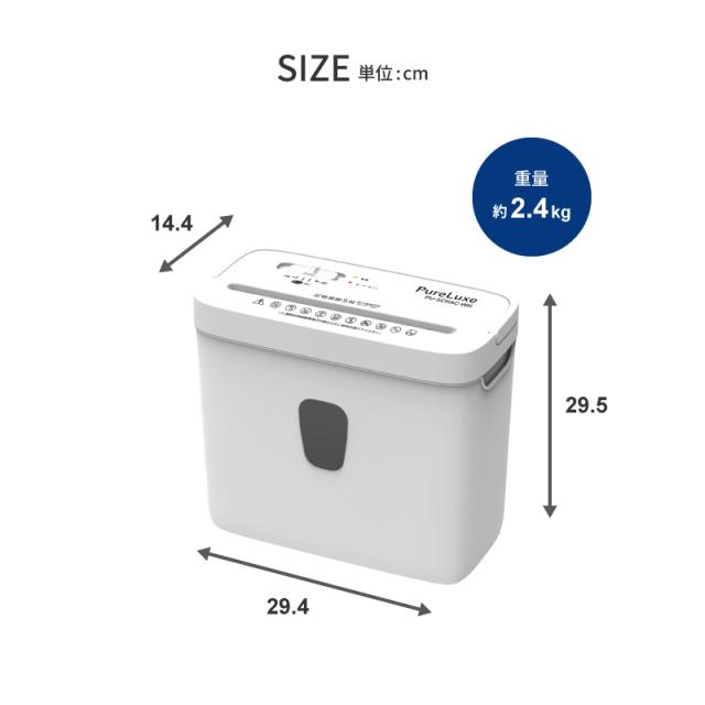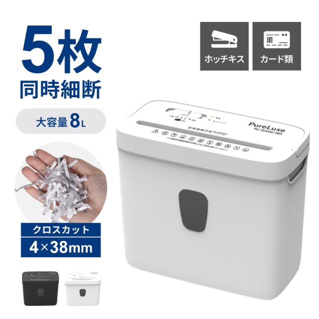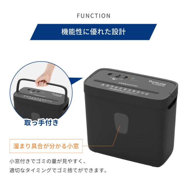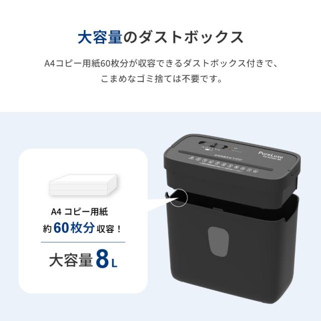 シュレッダー 家庭用 電動 Pure Luxe オフィス クロスカット 小型 A4用紙 コンパクト8L ダストボックス LEDランプ クレジットカード