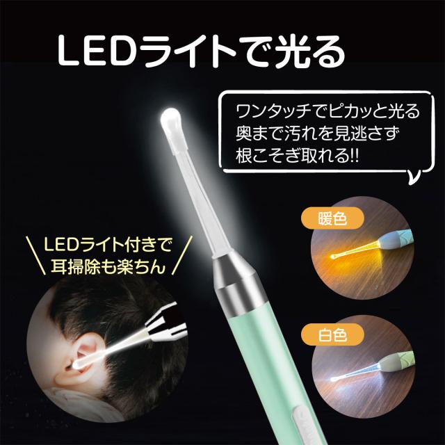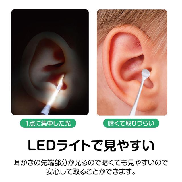 【LEDライトで見やすい】耳かきの先端部分が光り暗くても見やすいので、安心して取ることができます。
