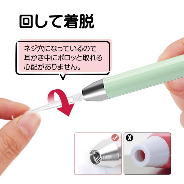 【回して着脱】ネジ穴になっているので耳かきの中にポロッと取れる心配がありません。