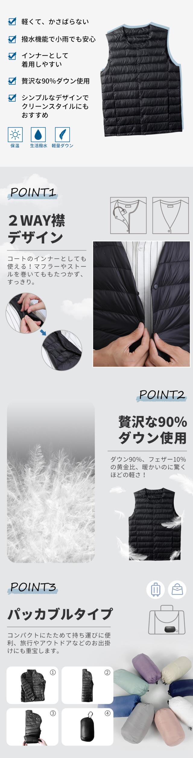 ダウンベスト インナーダウン キルティングベスト メンズ ライトダウンベスト ライトダウン アウター 軽い 暖か あたたかい 防寒 薄い 無地 シンプル ショート丈?収納袋?ポーチ付き コンパクト 秋 冬 春 大人 おしゃれ